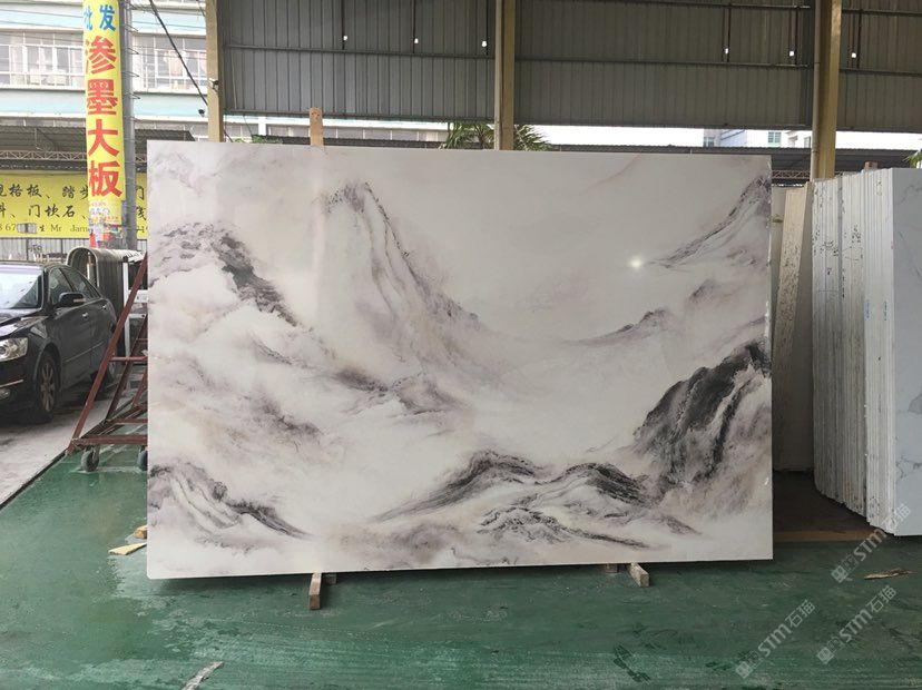 大量批發(fā),平價(jià)人造石,崗石線條,3D滲墨大板:爵士白,魚肚白,山水畫。