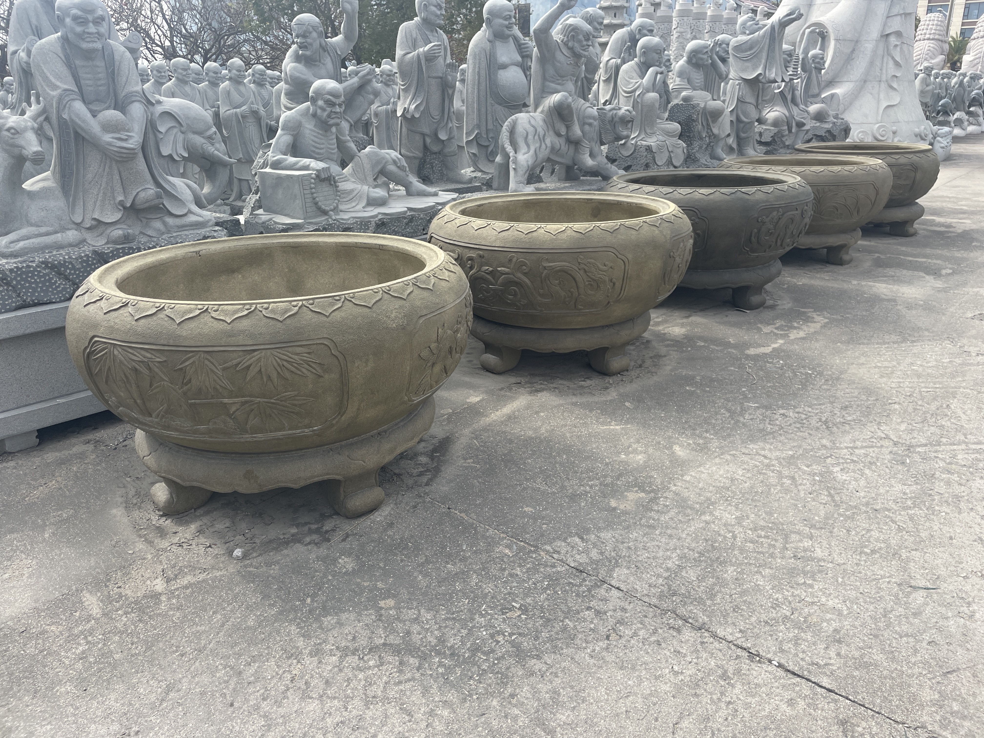 ? ? ? 生產(chǎn)加工產(chǎn)品主要包括大型雕塑、古今名人雕塑、園林配套雕塑、寺廟雕刻、動物雕塑、奇石(鐘乳石)、宗教大佛雕塑、龍柱、文化柱、石塔、經(jīng)塔、漏窗、山門牌樓、噴泉、庭院燈籠等上千個石雕品種。石雕技藝?yán)w巧、精細(xì),具有賞心悅目的藝術(shù)效果。近年來公司致力于城市景觀工程配套服務(wù),為市政廣場、城市綠化廣場、公園、住宅小區(qū)等場所提供大量具有相當(dāng)藝術(shù)含量的雕塑作品,設(shè)計(jì)、生產(chǎn)、安裝一站式服務(wù)。