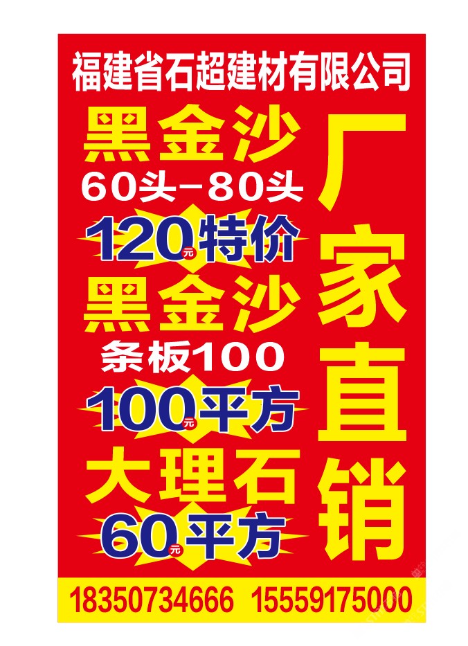 福建石超石業(yè),經(jīng)營進(jìn)口黑金沙,英國棕,巴西金鉆,奧特曼,白玉蘭,自有半成品加工廠、成品加工廠。承接黑金沙條板、成品、水景、地鋪、異形等工程單加工,歡迎您的光臨!15559175000、18350734666石總