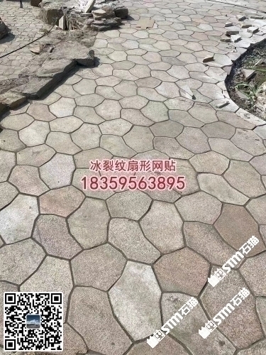 廈門工地黃銹石冰裂紋地鋪石扇形網貼六角磚亂拼碎拼石