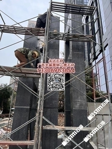 賀州鐘山青火燒面外墻干掛板廣西芝麻黑光面金點綠石材