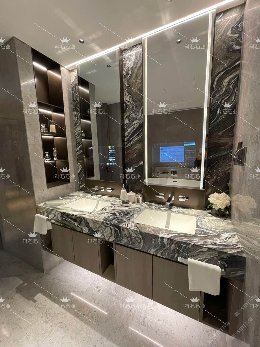發(fā)布信息: 科石石業(yè)紫山水工程案例 高檔住宅 奢石洗手間設(shè)計 采用1.8厚紫山水 聯(lián)系電話:18060036683