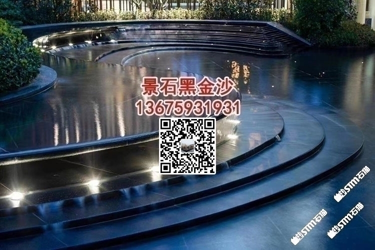 印度黑色石材戶外廣場(chǎng)噴水池印度黑金沙水池水景石材