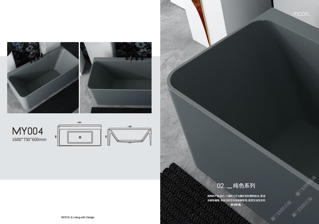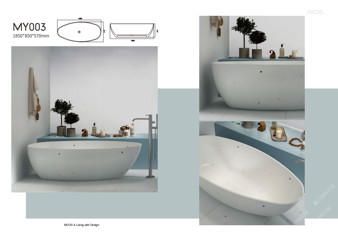 「MOOS魔石衛(wèi)浴」無(wú)機(jī)水磨石一體化浴缸系列