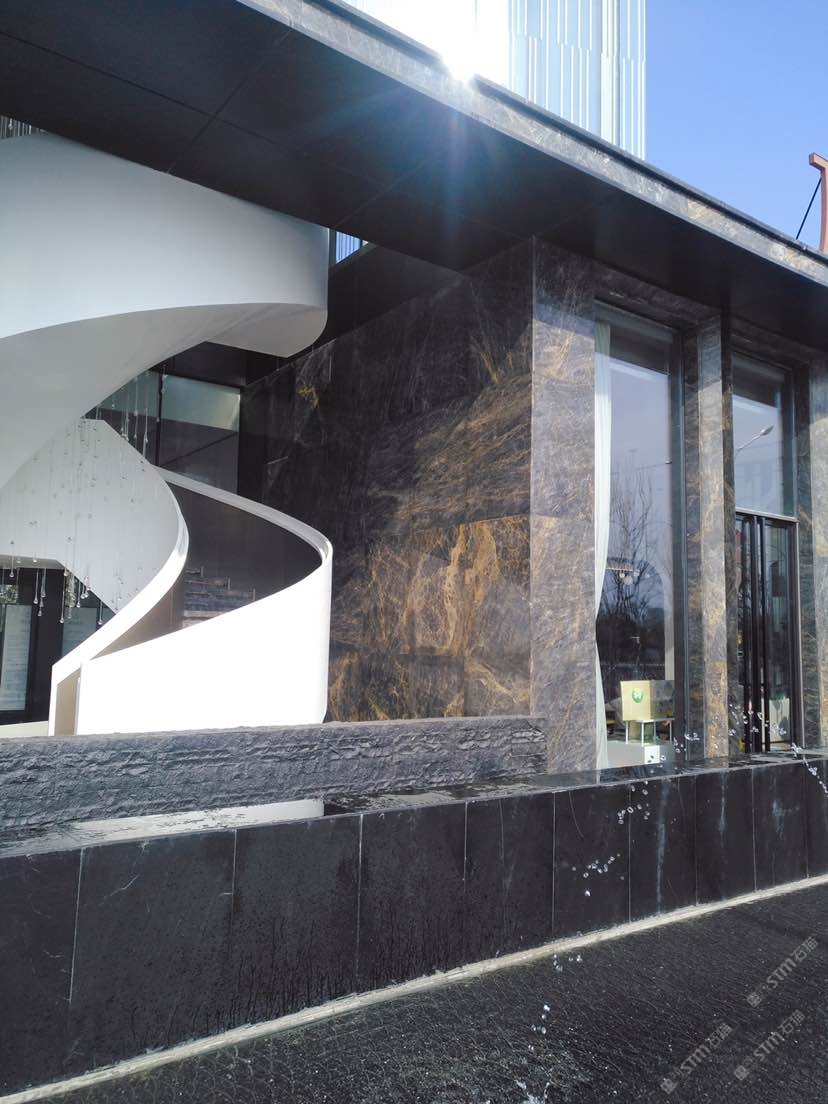發(fā)布信息: 此項(xiàng)目位于西安新區(qū),設(shè)計(jì)師很有創(chuàng)意的使用寶格麗金這個(gè)產(chǎn)品用作外墻材料。整體風(fēng)格簡約而不簡單,天然石材的深色帶藍(lán)和金線突顯售樓部的高檔與厚重。