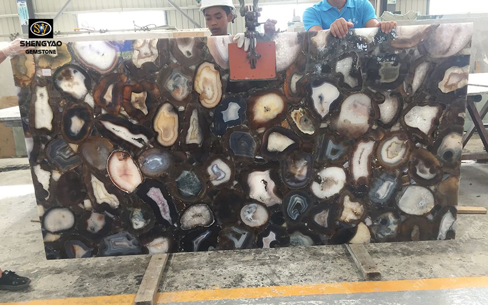 發(fā)布信息: 半寶石板材——瑪瑙大板,常規(guī)尺寸1220*2440mm,支持定制尺寸,異型等工程需求。高端墻面裝飾,臺面,吧臺。廣泛應用于別墅、酒店、會所、酒吧、咖啡廳、專賣店、浴室噴泉、廚房、桌面等應用裝飾。 升耀寶石專業(yè)生產虎眼石,瑪瑙,水晶,木化石,景泰藍,青金石,紫瑩石,孔雀石,多紅碧玉,紅綠寶,拉長石,銀線石,鐵虎石,格蘭云天,草化石,龜背石等歡迎聯(lián)系訂購