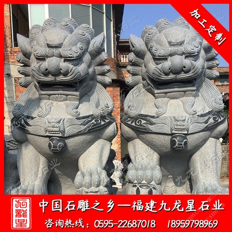 發(fā)布信息: 九龍星石業(yè)是石雕獅子廠家,從事石雕獅子加工制作20多年,石雕獅子款式多樣,價格合理。石雕獅子材質可以為花崗巖、大理石、漢白玉、青石等等,望廣大新老客戶前來參觀考察和選購。 石雕獅子顧名思義就是有石材雕刻而成的石雕獅子,石刻石獅子寓意很多,深受人們喜歡,民間流傳石雕獅子的寓意都很吉祥。 傳統(tǒng)石雕獅子作為中國傳統(tǒng)建筑中經常使用的一種裝飾物,人們喜愛將它擺放在家門口,有的獨立的獅子把門,有的放在門枕石上,有的與石鼓結合在一起。石雕獅千姿百態(tài),造型靈活。自唐代以來的大型石雕獅子基本上保持統(tǒng)一的坐姿,與漢代獅子石像常有的匍匐姿態(tài)相比,更接近于休憩而非狩獵,反映出唐代時期生活的富足、社會的安定,以及整個社會尤其是統(tǒng)治階級追求安逸、享樂的心態(tài)。大型石雕獅子有3米石獅子、2.8米石獅子也有2米石獅子。