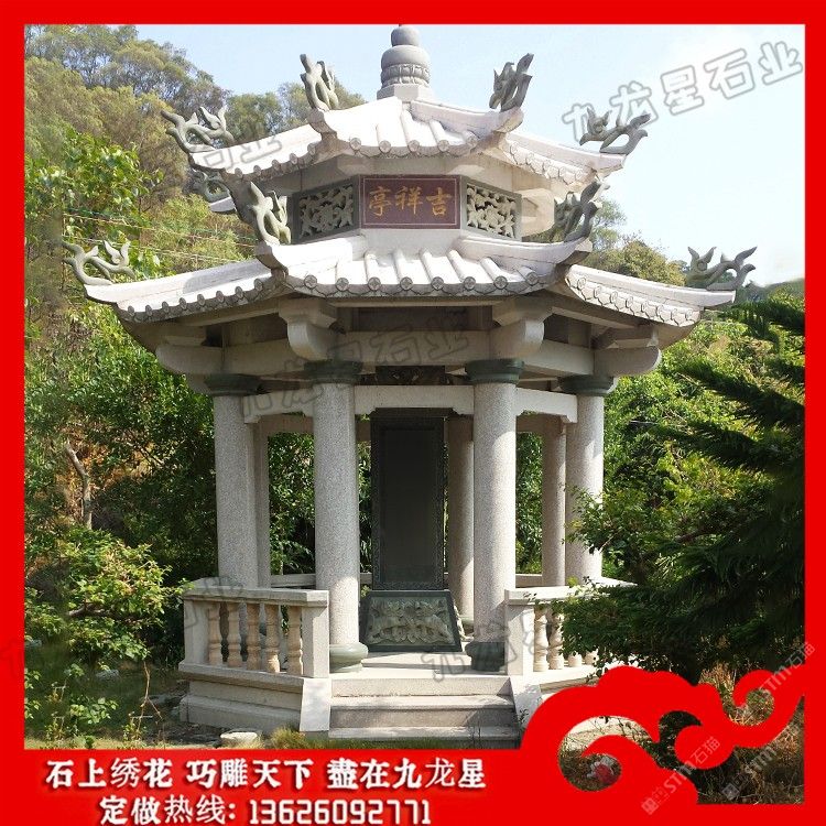白麻六角亭子 戶外石材石雕亭子雕刻廠家