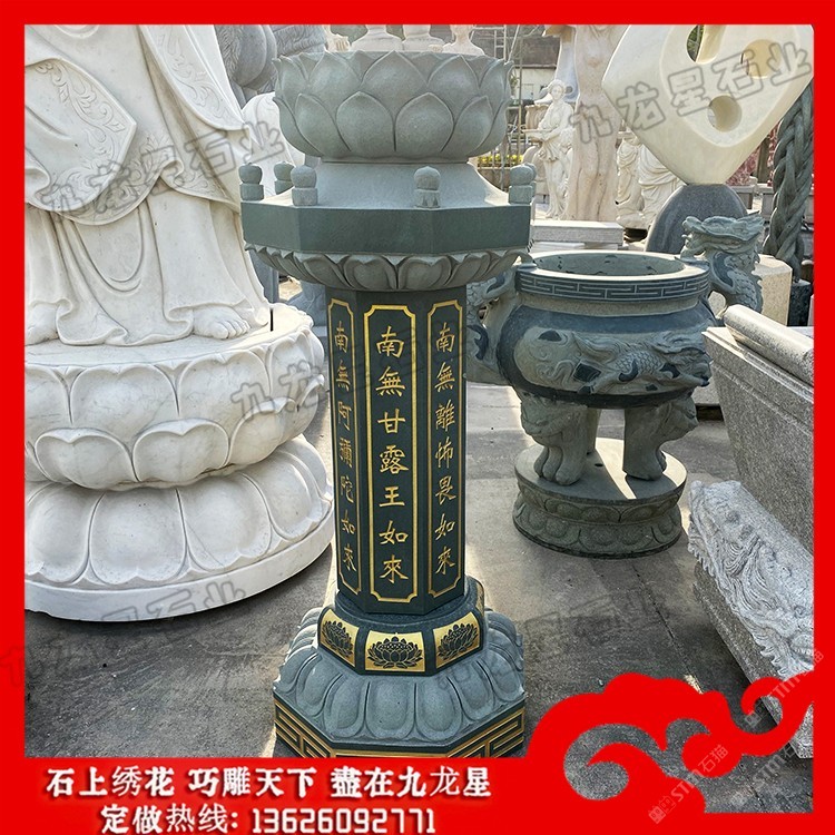 發(fā)布信息: 佛教施食臺(tái)價(jià)格 石材出食臺(tái)圖片樣式——九龍星石業(yè)。 佛教施食臺(tái)的構(gòu)造是一種兼具石柱、石塔風(fēng)格的食臺(tái),一般的石雕出食臺(tái)的柱體為多 邊形、上書(shū)多尊佛名。常見(jiàn)的有四尊佛名、七尊佛名。分別是:多寶如來(lái),妙色身如 來(lái),廣博身如來(lái),離怖畏如來(lái),甘露王如來(lái),阿彌陀如來(lái)。當(dāng)然也有部分出食臺(tái)會(huì)雕 刻佛教典故。石雕出食臺(tái)除了作為布施之用還能夠裝點(diǎn)庭院,提升庭院的佛法氣息, 弘揚(yáng)佛法精神。 制作石雕出食臺(tái)的材質(zhì)有各類(lèi)花崗巖、大理石、砂巖等。其中以花崗巖的采用量 ,大理石和砂巖則相對(duì)少些。大理石一般表面會(huì)帶有很多不規(guī)則的花紋,少數(shù)漢白玉 石除外。砂巖在惠安雕刻早期時(shí)間會(huì)偶爾采用一些,而后由于粉塵太大,對(duì)人的身體 損害較大,因而現(xiàn)在很少會(huì)有砂巖雕刻品。所有,若以使用的材質(zhì)種類(lèi)來(lái)區(qū)分出食臺(tái) 種類(lèi)的話有花崗巖施食臺(tái)、大理石施食臺(tái)、砂巖施食臺(tái)等。