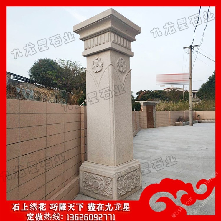 發(fā)布信息: 院子大門石柱價(jià)格 石材大門門柱造型圖片——九龍星石業(yè)。 ? ??石材大門門柱造型圖片的形態(tài)與構(gòu)成中國柱式的斗栱從單層發(fā)展至多層,由較基本的四鋪?zhàn)髂酥涟l(fā)展到八鋪?zhàn)鳎纬梢环N十分精巧獨(dú)特的構(gòu)造,外觀上給人復(fù)雜多變、神秘莫測的感覺。斗栱的構(gòu)件又都是一些較小的部件,如“枓”、“栱”、“昂”等。將這些較小的部件以榫卯形式搭接咬合,組成一組整體性的空間框架體系,使人嘆為觀止。 ? ??院子大門石柱在低層或多層建筑中,當(dāng)層高較高時(shí),室內(nèi)空間中會出現(xiàn)過分細(xì)長的柱子,使別墅圓柱子形態(tài)缺乏一定的張力,因此可采取相應(yīng)的裝飾設(shè)計(jì)方法從視覺上擴(kuò)張柱子的橫向體量感。 ? ??院子大門石柱的直徑和高度主要取決于荒料的尺寸,較小直徑一般為100mm,較大直徑小于等于2000mm;不論是整體的、還是部分的圓柱,其單體高度一般小于5000mm,但也有一些高度超過5000mm的特殊圓柱。標(biāo)準(zhǔn)的別墅大門石材柱子包括柱礎(chǔ)、柱體和柱帽三個(gè)部分。