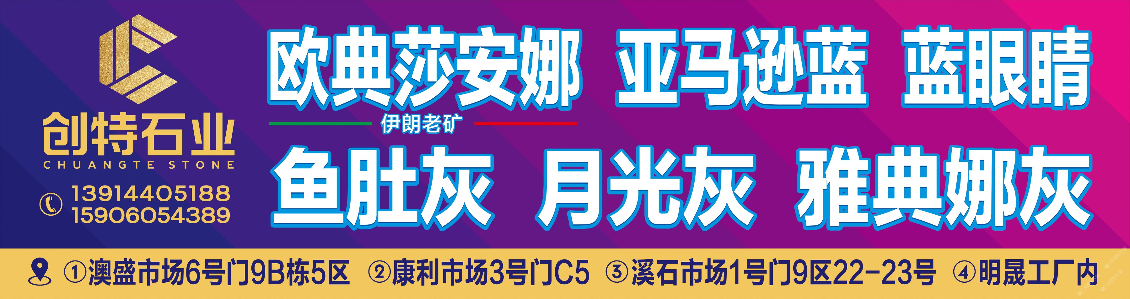 發(fā)布信息: 你好! 創(chuàng)特石業(yè) 李志森13626060635 主營(yíng):魚(yú)肚灰 意大利云灰月光灰 洲際灰 雅典娜灰 歐典莎安娜 亞馬遜藍(lán) 藍(lán)眼睛