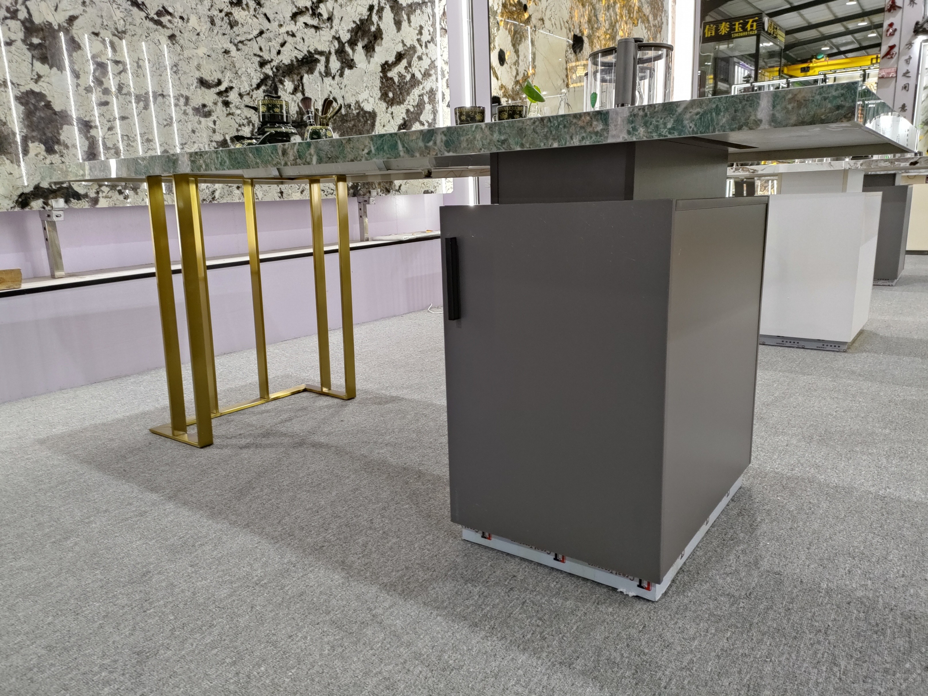 亞馬遜綠輕奢巖板別墅茶桌椅組