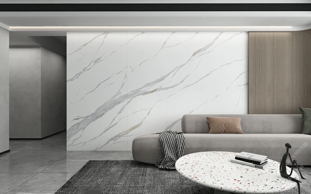 唐馳定制巖板背景墻 魚肚金