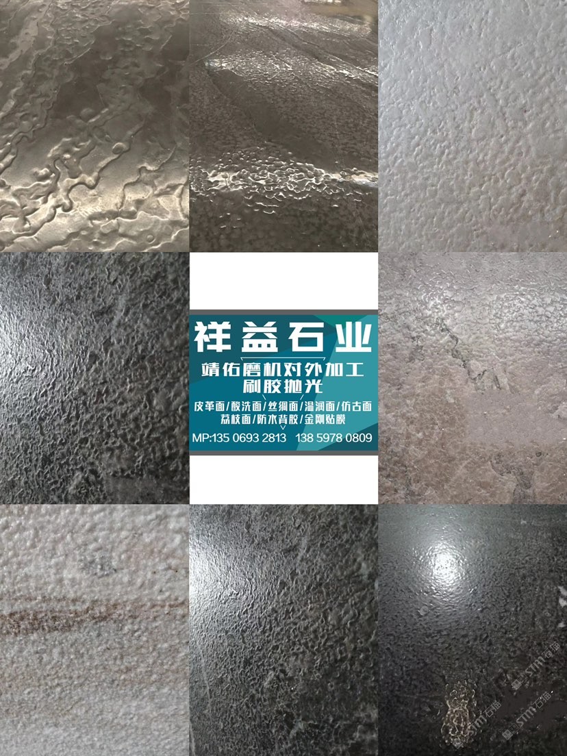 發(fā)布信息: 【祥益皮革面】專業(yè)加工皮革面.防古面.啞光面.荔枝面.絲綢面.溫潤面.磨砂面.酸洗面.水洗面.噴砂面.刷膠拋光.對反磨.5cm厚板加工.金剛貼膜.防水背膠 地址:曾莊匯恒A4 ??:13506932813 戴 20頭臺灣靖佑磨機(jī) 160輛大板臺車對外加工服務(wù) 行業(yè)開拓者 8年用心服務(wù)