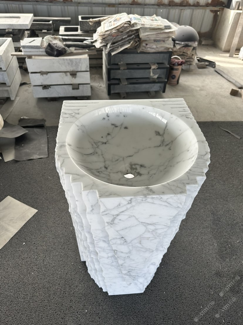 卡拉拉白柱盆 洗手盆 石材衛(wèi)浴四件套