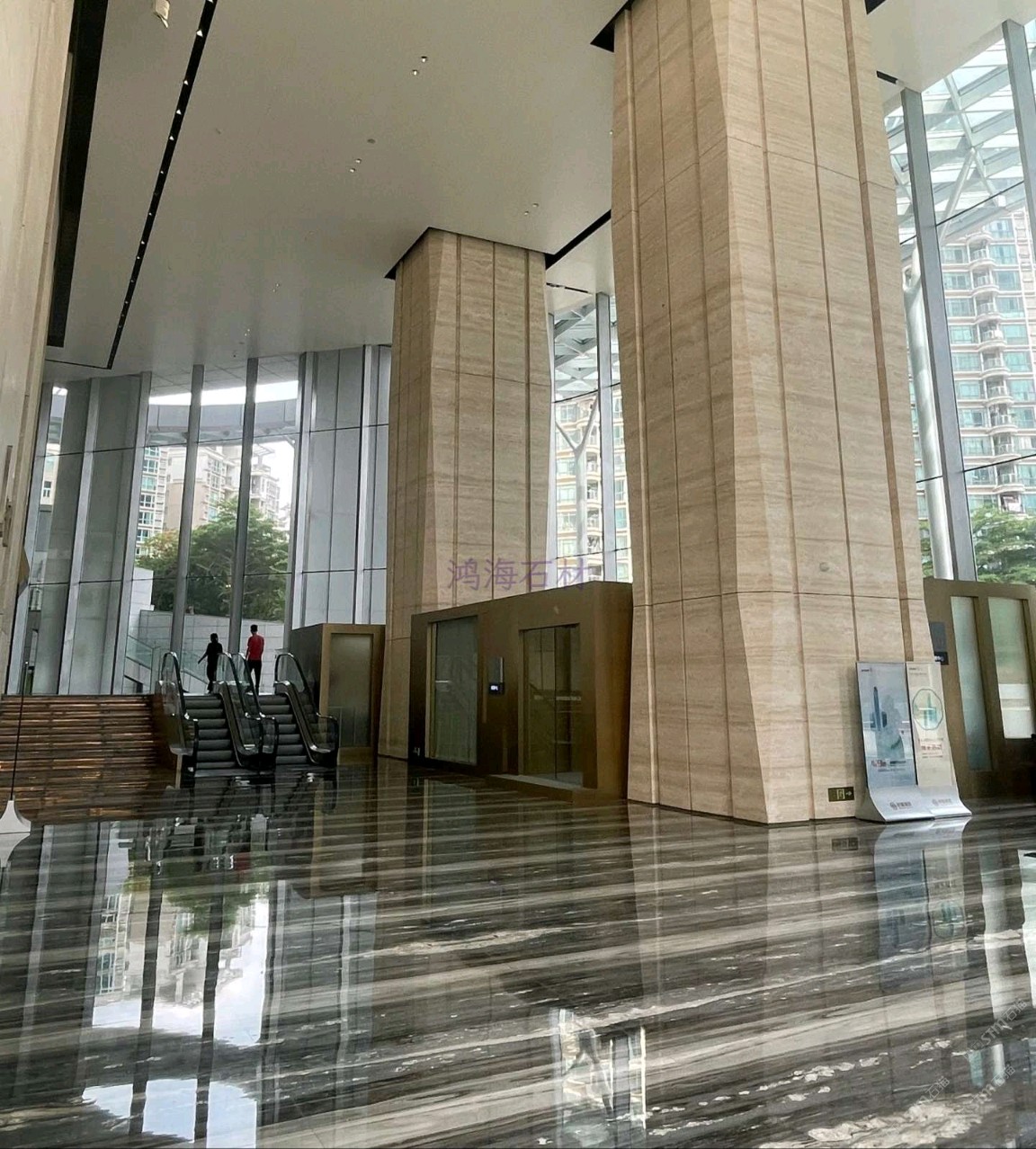 發(fā)布信息: 東莞國貿(mào)中心寫字樓 #東莞寫字樓#東莞國貿(mào)中心,地面石材鋪貼紋理非常好看,石材紋理像河流浪花??,大堂墻面用淺色洞石材料,巨大的柱子用洞石做造型像樹干,核心筒立面造型像石頭,搭配地面灰藍色水紋石材,寓意浪花擊石;材料色調(diào)和諧,古銅金屬面板提升造型精致度,金屬質(zhì)感與洞石觸感的碰撞非常有意思;大空間里細節(jié)滿滿的設(shè)計。