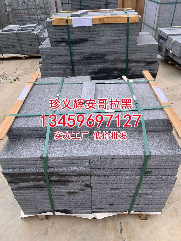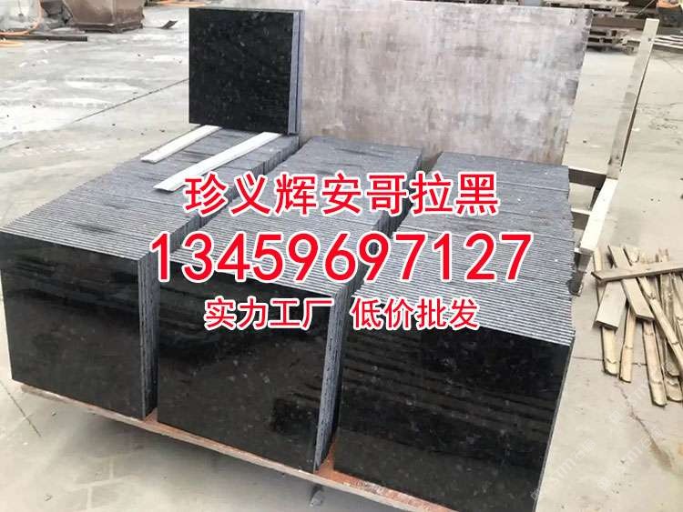 安哥拉黑石材火燒面荔枝面光面工程板黑水晶印度黑金沙
