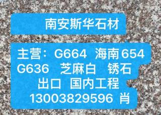 鑫萬佳石材主營產(chǎn)品:新664#,新G664,新664,G664,G664(火燒面),G664(荔枝面)企業(yè)地址:福建南安閩南第一建材市場(chǎng)9棟13-14號(hào)辦事處